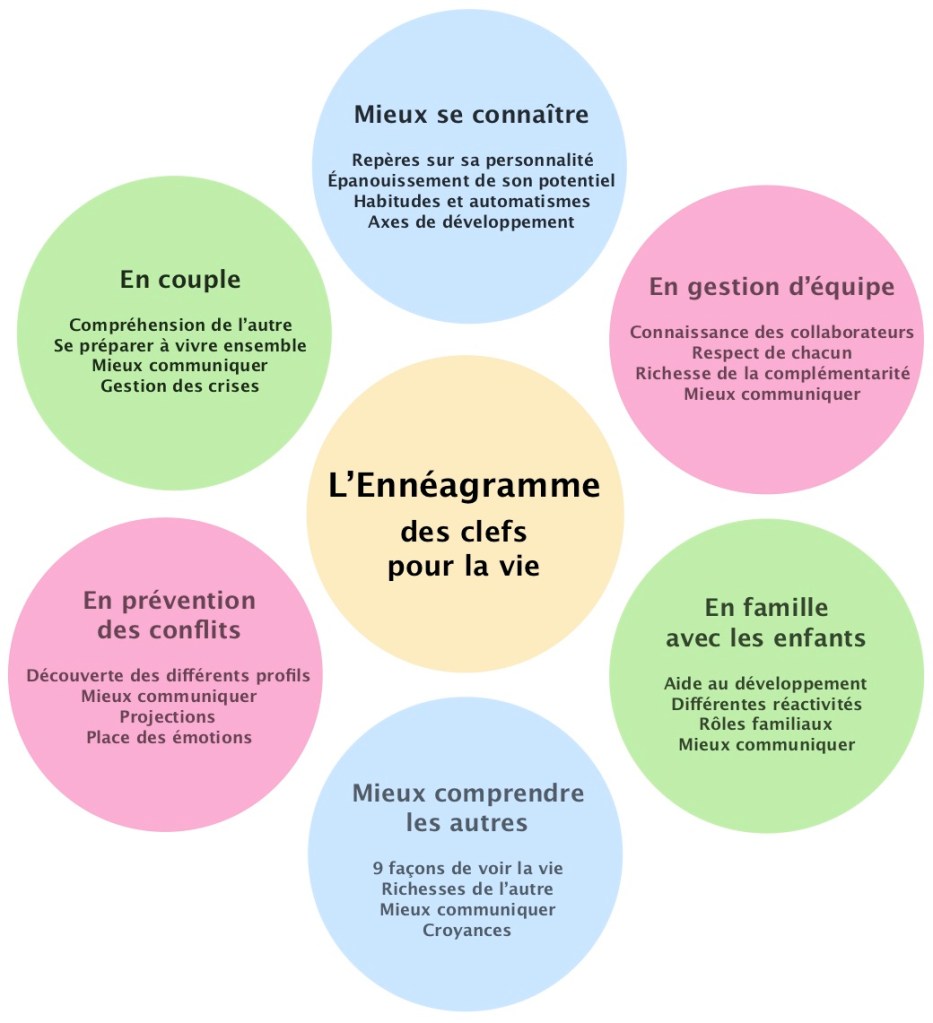 L’ennéagramme est également un moyen pour améliorer le vécu et la performance d’une équipe ou d’un groupe, en apprenant à s’ouvrir aux richesses de l’autre et à donner le meilleur de soi.